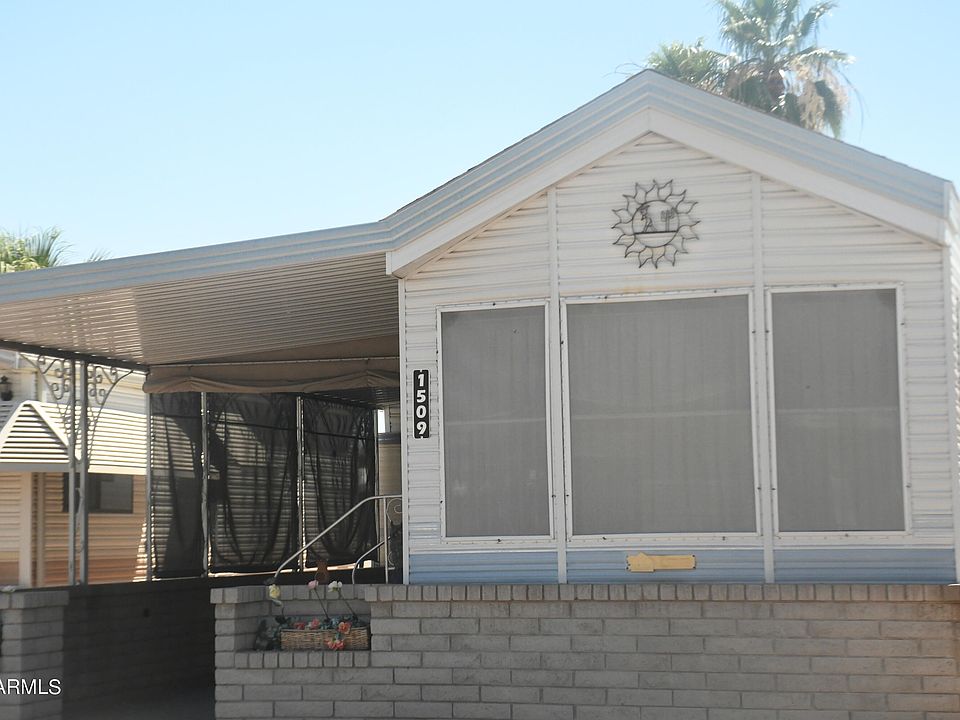 This beautiful seasonal retreat is in the Active Adult Community Roadhaven Golf & Tennis Resort. Easy access to the 60 freeway; close to restaurants, shopping and parks. Short drive to Saguaro Lake and the Superstition Mountains. This cozy retreat offers a bedroom with plenty of storage space and lovely wood finishes. Your kitchen offers laminate counter tops and plenty of cabinetry. This home is nestled in a gated community with a private golf course, pickle ball, tennis courts, shuffleboard and bocce ball. There is a billiards hall, a fitness center, laundry facilities, and a restaurant. The mountain views are breathtaking. Beat the summer heat with the sparkling pools! A true desert treasure, you must see it to appreciate what a buy this is.