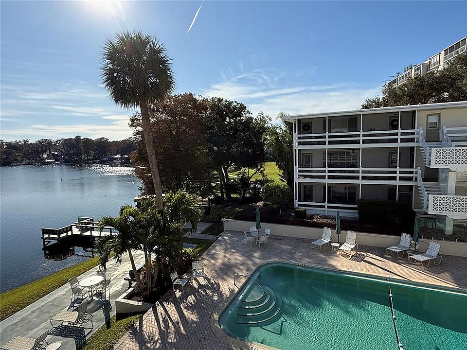 Stunning multi-million $$$ lake front property. Maitland Harbour is a tiny, private 38-unit resort style community nestled on Lake Maitland with the best views and breezes on the entire lake. This 1st floor end-unit is lake front & may be the last one of the six end-units to be for sale for a long time to come. Don't miss out! A gorgeous home, tastefully decorated with elegant southern charm. Upgrades include: "real" hardwood floors, custom cabinetry, granite counters, crown molding, beautiful paint colors, fabulous fixtures & window treatments, rounded walls, newer windows/sliding door, & updated bathrooms. Private back patio deck surrounded by lush tropical landscaping mixed with swaying oak trees, and the gentle breeze of the lake! Enjoy your screened front porch with pool & lake views. Watch the sun & moon rise from inside/outside your home. Maitland Harbour features a lovely courtyard, pool, kayak racks, multiple boat slips and a boat dock with benches, plus covered parking. New roof, milestone inspection and structural integrity reserve study completed. Located next to historic Fort Maitland Park, across from Lake Lily, the heart of Maitland's Culture Corridor with festivals, farmers market, & fireworks. Walk to Enzian’s Florida Film Festival & local restaurants. Only minutes to Park Avenue shopping, restaurants, museums, farmers market, hometown holiday parades, Rollins College and the famous Winter Park art festival. Some light fixtures do not convey.