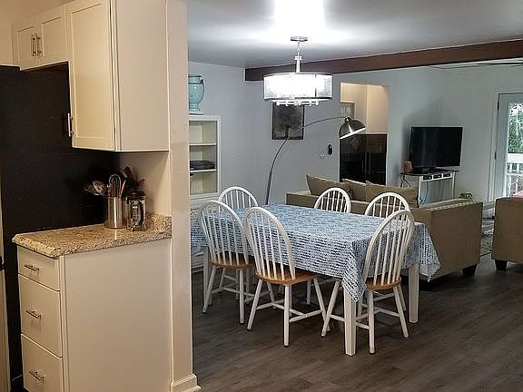This rarely available 3 bedroom condo can be your primary residence, second home or vacation rental. There are no rental restrictions. Renovated with new a/c handler, new tin roof, new vinyl floors and new floor joists, this unit features an upgraded kitchen, upgraded bath and new double patio doors. The dining/family room features a real wood burning fireplace and french doors leading to your private deck. Upstairs are 3 generous sized bedrooms. Condo unit is beautifully furnished and furniture is negotiable to purchase separately. This complex is conveniently located for easy on/off island access.