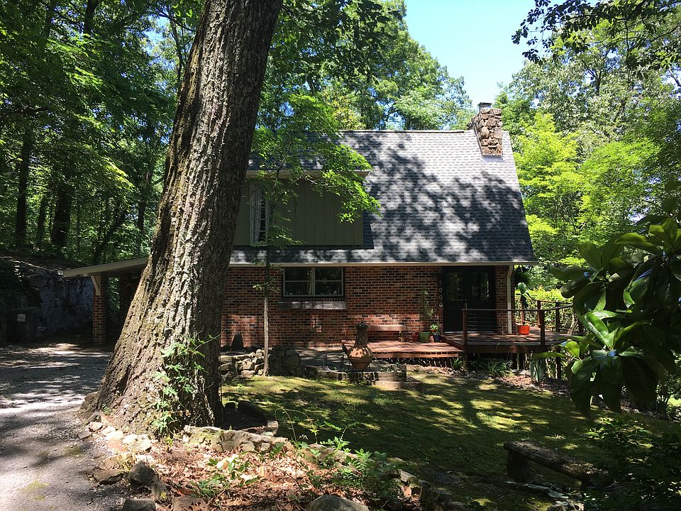 Nestled hilltop in the "Craven's Land Trust" this A-frame inspired property is busting at the seams with character. Nature surrounds the property with various species of greenery, and moss covered boulders are strewn about walking paths. When you finally pull yourself away from the nature surrounding you for the day you can venture inside. The living-room opens up to 22ft vaulted ceiling. The front wall in encased in glass to show off the winter time views of Chattanooga below. Warm up by the high efficiency wood burning stove placed at the natural stone fireplace, or retire to the upstairs master bedroom loft. There is a main bath on the loft level, and a half bath for guests or to accommodate the second bedroom downstairs. The newly updated kitchen includes a 5 burner glass top convection oven, and stainless steel fridge and subway tile backsplash. Located in the highly desirable Lookout Elementary school district. The school is rated in the top 3 learning centers in all of Tennessee. Come enjoy all the privacy of mountain life while being literally 5 minutes from downtown for all the city has to offer. Truly the best of both worlds.
