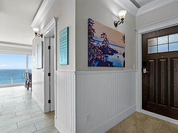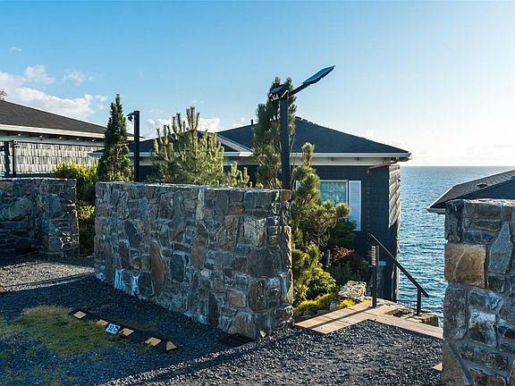 Immerse yourself in coastal luxury at this stunning south-west facing SookePoint Cottage, perched above a vibrant, active marine panorama. Revel in the elegant open-concept living and kitchen area, framed by an expansive tri-panel sliding glass wall that invites uninterrupted views toward the Olympic Mountains, the vast Pacific, and the picturesque Sooke Hills. This exquisitely furnished and fully equipped two-bedroom, two-bathroom waterfront haven spans 1035 square feet, featuring Insulated Concrete Form (ICF) construction for superior efficiency and soundproofing. The sophisticated interior is adorned with top-tier cabinetry, sleek stainless appliances, and pristine quartz countertops. Each bedroom is a sanctuary, complete with a snug electric fireplace. While the master suite boasts a lovely ensuite with separate shower, the main bath features shower and freestanding soaking tub. SookePoint offers an exclusive "lock&go" lifestyle with the flexibility of a rental option when away.