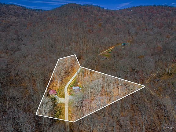 2 for 1 First is a 2 bedroom newer home on 3.8 acres of wooded acreage. Home is a newer build with living and kitchen great room, 1 full bath and a utility room.2nd is an over 100 year old log cabin w/1 room and loft area.Rock bottom creek flows past both. Hard woods all around. Proper is located in the foot hills not far from the Ohio River. Fairly secluded setting. Newer home is in move in ready condition. Log cabin is in need of restoration. Possibilities are several. White Tail Country or getaway to escape the busy life.