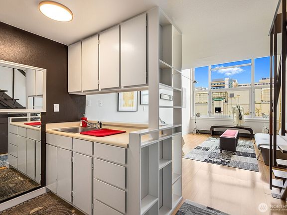A mid-century architecture lover's dream! FHA approved! Walk to all Cap Hill & First Hill have to offer! Immerse yourself in this light-filled, loft style 1-bedroom condo w/vaulted ceilings & enormous window wall. The building features secure fob entrance, elevator, gym, sauna, laundry room & storage. Own this pet-friendly, in-city oasis & use it as a smart rental investment property for traveling nurses, etc. Or take advantage of this location as your own funky, urban retreat. Either way, you win!