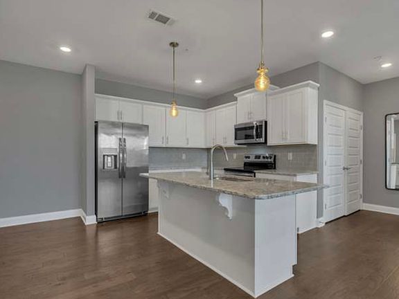 Spacious islandWalking trailsOpen floor planStainless steel appliancesSubway tile back splashWalk in closetCommunity pool