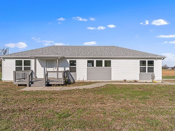 10 acres Open land and wide-sky views Single-level home with open-concept layoutThis 3-bedroom, 2-bath home sits on approximately 10 acres along West Miller Street, offering a blend of open pasture and gently rolling ground with long road frontage and deep driveway placement for added privacy. Built in 2020, the home features a spacious open living area, a dining space, and a centrally located kitchen. The single-level floor plan includes a large primary suite with two walk-in closets and a full bath, plus two additional bedrooms on the opposite side of the home for functional separation. Interior details include neutral finishes, recessed lighting, modern bathroom fixtures, and an electric HVAC system with electric and propane heating. A dedicated laundry room and an attached 2-car garage provide practical convenience.The acreage offers open space, with unobstructed sky exposure and views across the surrounding countryside. Property is on city water and city sewer. Approx. 0.3 miles to MO-215 for quick access to Pleasant Hope amenities. Nearby destinations include Pleasant Hope City Park, Dollar General, Pleasant Hope Post Office, and the town center within roughly 1 mile. Broadband availability varies by provider; buyer to verify service options. This property combines modern single-level living with acreage, open land, and close proximity to local amenities, an opportunity for those seeking space with convenient access to Pleasant Hope.