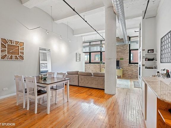 Beautiful 900sqft loft in West Loop perfect for working from home or commuting to work & has plenty of space for your Peloton bike!! This true loft has tons of character with its soaring ceilings, exposed brick, and a gas fireplace. Spacious bedroom area comfortably fits a queen sized bed & storage is a breeze with multiple closets. The spacious kitchen is great for entertaining & features granite counters & stainless steel appliances. Living room boasts oversized windows & plenty of space for your home office. Returning to the office? You've picked the perfect location to be walking distance to the Loop & Pink/Green lines or easy breezy to 90/290. You're steps to Marianos & Whole Foods, Restaurant Row, and Fulton Market!