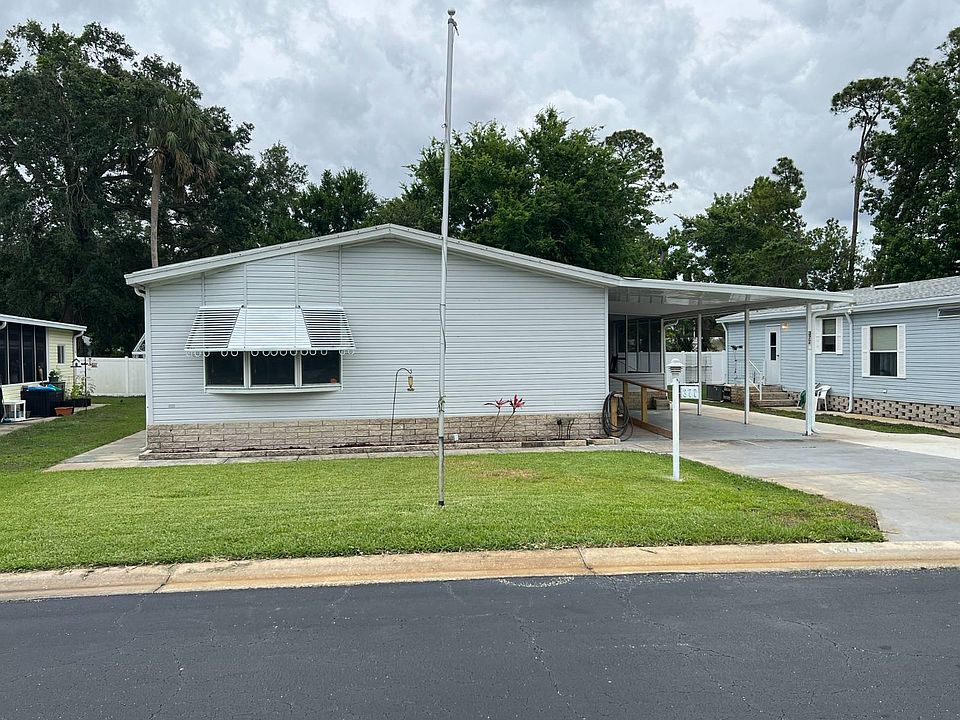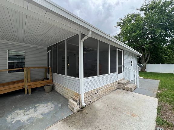 REDUCED! It's challenging to find a 3-bedroom, 2-bathroom manufactured home nowadays, but we discovered a gem. Located in a gated 55+ senior community with numerous amenities, this 1,352 sq.ft. home sits towards the back of the park on a serene cul-de-sac with minimal traffic. The perimeter lot features a vinyl-fenced backyard, an irrigation system to keep the lawn green, and awnings to cool the home. Additionally, there is a large deck off the master bedroom constructed with durable TREX boards. The property includes a long carport, double-wide driveway, sturdy ramp, and an inviting screen porch as well as a large shed for storage. This home has many advantages, beginning with its spacious open floor plan where the ceilings and walls are drywall. The large living room connects seamlessly to the dining room, which includes a built-in hutch for ample storage. The expansive kitchen offers plenty of storage space, including a walk-in pantry. The entire home has been freshly painted, with new flooring and a brand new roof. The bedrooms are all good sized and all have walk-in closets and the master has an en-suite with double sinks, walk-in shower and a large linen closet. The convenient inside laundry area makes wash day a breeze. And, you are close to shopping, restaurants, medical, the beach and more. Lot rent is $706 in this beautiful park. Check this one out today. It won't last long! ALL INFORMATION DEEMED ACCURATE BUT NOT GUARANTEED. Additional fees for amenities may apply. Agent and or Company is not responsible for quoting current monthly fees, lot rent, or dues/fees associated with the community or home. Those figures are the responsibility of the buyer and community manager/owner to obtain/ disclose.