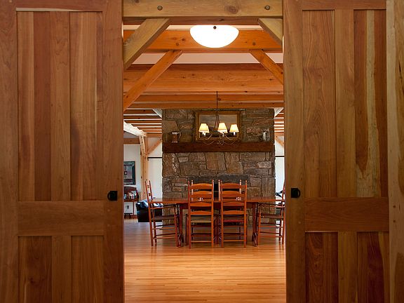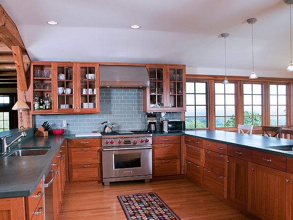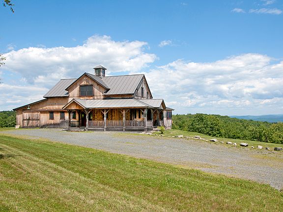 Applehill was built in 2005 by a local craftsman utilizing as much native material as possible such as local stone, hemlock for post & beam construction and honed Vermont slate countertops. This home balances comfortable, open living spaces and modern amenities with traditional architectural references executed in impeccable taste. Privately sited on a 25.52 acre parcel with many pear and apple trees, open pasture and pond, Applehill features spectacular panoramic views to the East and South. Located in the equestrian-oriented West Windsor area, this unique residence encompasses approximately 4,000 square feet of living space with three bedrooms (one a large bunk room), 3