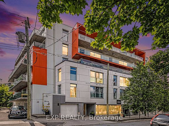 Discover the perfect blend of modern style and everyday functionality in this stunning 1-bedroom + den condo at The Eddy, a LEED Platinum-certified gem in vibrant Hintonburg. Boasting sleek design, premium upgrades, and a private balcony with captivating views of the neighbourhoods lively core, this home offers an unparalleled urban living experience. Inside, you'll find an open-concept kitchen and living area with quartz countertops, sleek cabinetry, and stainless-steel appliances. Soaring 9-foot exposed concrete ceilings, hardwood floors, and floor-to-ceiling windows bring in natural light, enhanced by professionally installed custom privacy shades and upgraded ceiling lighting throughout. The bedroom features a custom-built closet system with shelving and drawers, while the den provides flexibility for a home office, reading nook, or guest space. Additional upgrades include a Nest thermostat with smartphone control, extra electrical outlets, and designer lighting. This unit includes in-unit laundry, one underground parking spot, a storage locker, and even a private garden plot. Condo fees cover heating, cooling, and water offering convenience and peace of mind. Life at The Eddy also means access to a rooftop terrace with BBQs, lounge seating, and sweeping views of the Ottawa River and Gatineau Hills. Just steps from Bayview Station (LRT& buses), and surrounded by coffee shops, bakeries, restaurants, grocery stores, yoga studios, and boutique shops, you'll love everything Hintonburg living has to offer. Whether as your primary residence ora smart investment, this stylish and eco-friendly condo embodies the best of connected, urban living.