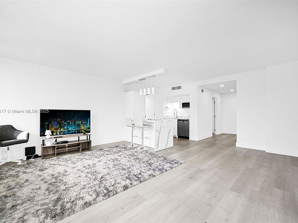 Renovated corner 1BR with a flexible extra room for second bedroom, den, or office. 943 SF of open concept living with recessed lighting, custom interior doors, hurricane-impact windows, and a sleek open kitchen with brand-new refrigerator. Bright interiors and generous closets. Best price in the building and area for a 1/1 with an extra room. Mirador 1000 features a new lobby, updated hallways, and a spectacular pool deck. Amenities include 24/7 concierge and security, high-end gym, spa, sauna, salon, and on-site market. Near Whole Foods, dining, Lincoln Road, and the beach. Easy to show.