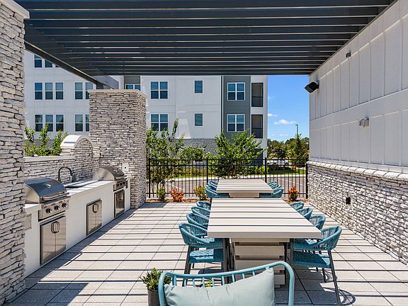 - Exterior features: Balcony, Business Center, Coffee Bar, Conference Room, Exterior Type: Conventional, Golf Simulator, Granite Countertops, Package Receiving, Pet Washing Station, Stainless Steel Appliances, TV Lounge, Tub / Shower, Walking Paths Throughout