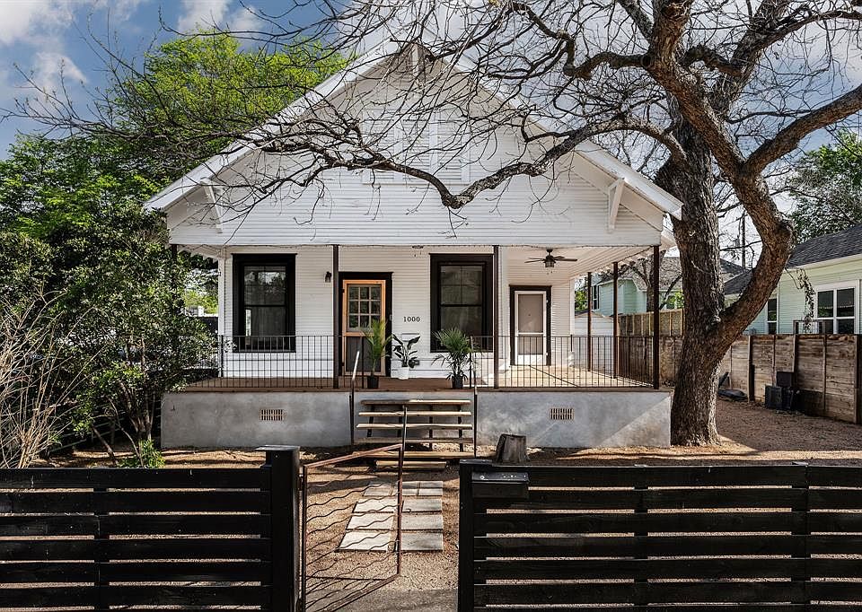 1000 Willow St. is the perfect example of a beautifully appointed 2+office/1 bath bungalow in one of Austins most storied and charming districts. Holly is just steps from Rainey Street, downtown, and the nationally recognized dining, coffee, bars, and entertainment that make this East Austin neighborhood so sought after. Sitting on a large corner lot, this single-level home is wrapped with a spacious porch with views of the city skyline. The entry experience is flanked by two thoughtful living spaces and sitting areas with original hardwoods, even complete with a projector and drop-down screen for entertaining. Every space in the house is filled with light from the well placed windows in the home, yet ample room for art is still maintained. Continuing past dining into the kitchen, the floor is covered with hand selected tile and complemented by thoughtfully designed fixtures and finishes throughout the cabinetry and farm sink. The primary bedroom is spacious and private, separated from the secondary bedroom with a design-forward bathroom with custom tile-work and walk-in shower. On the other side of the kitchen, there is a large flex space that not only houses the laundry area, but has ample room (as staged) for an office, additional living, a guest room, or all of the above. The yard space is ample and wraps around the house, and even has a sizable storage room. Austins best is moments from your doorstep, including Black Swan Yoga, Oseyo, Cenote, Flat Track, Palm Pizza, Cosmic, Plaza Saltillo, Rainey Street, and all of downtown.