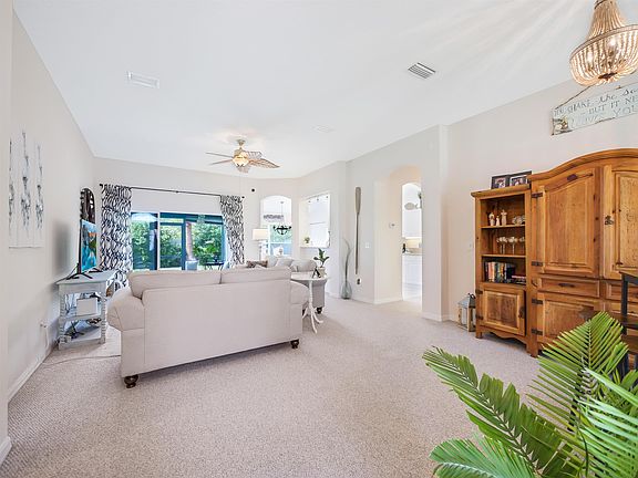 Island living at it's finest! This spacious 3 bedroom, 2 bathroom home is the perfect oasis retreat. Start your mornings on the covered, screened lanai and cap your days off enjoying the phenomenal sunsets from the backyard gathering spot at the end the day. This home is light, bright and airy with all the bells and whistles! Stainless steal appliances, new roof in 2019, AC unit replaced in 2020, new 2021 washer and dryer to stay with the home, upgraded light fixtures in the kitchen, dining area and foyer, and plantation shutters in the dining room to name a few. With impeccably maintained landscaping for optimal privacy with mature palm trees, this home is move in ready and a must see! Curtain rods (not drapes), washer and dryer, and red chairs in the backyard to convey with the home.