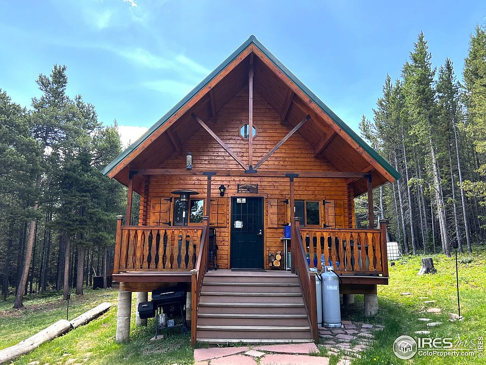 Nestled within the secluded enclave of Moose Haven, a private inholding of Roosevelt National Forest, this charming off-grid log cabin offers a rare opportunity to own 35 acres of pristine mountain terrain. Perfectly positioned for those craving solitude, natural beauty, and year-round recreation, this peaceful retreat blends rustic elegance with backcountry spirit. The 900 sq ft log cabin is thoughtfully crafted with vaulted ceilings, warm wood details, and an inviting open layout that connects the living room, kitchen, and central woodstove into one cozy gathering space. With two bedrooms plus a sleeping loft, there's ample room for friends and family to relax and reconnect. Off-grid living is supported by a generator-ready electrical system, while water is brought in to sustain simple comforts. Step outside to explore endless acres of forested land, encounter wildlife, or simply savor the stillness of your mountain surroundings. Property sale includes a log splitter, wood chipper, various tools and yard equipment, ATV, small trailer, cistern for water storage, and all furniture inside the cabin. With no visible neighbors and winter access limited, this property offers true escape-whether for seasonal stays or as the foundation for a full-time off-grid lifestyle. Unparalleled privacy. Enduring craftsmanship. Untouched wilderness. This Moose Haven gem is ready to become your mountain legacy.