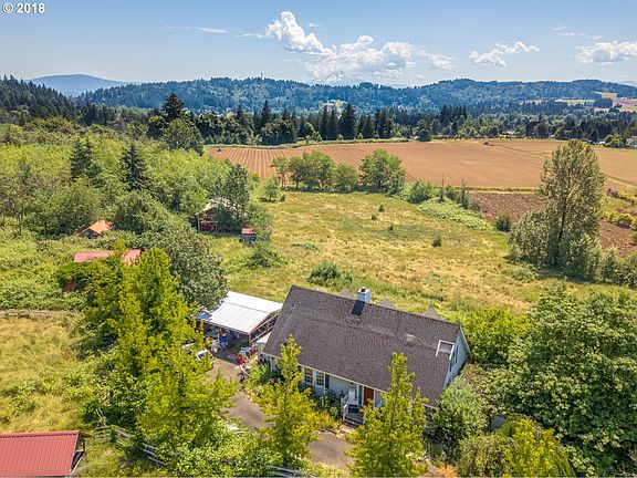 Cash offers only. Fixer w/potential on nearly 5 acres. Hardwoods in entry, formal dining room, double master suites with double closets and claw foot tub. Wall of windows opening up to covered back deck overlooking valley with stunning views of Mt. Hood. 2 barns, 1 shop, greenhouse, carport, RV parking, pergola, seasonal pond. 3rd bedroom unfinished. Buyer to assume all personal property. Open Sunday 9 - 10:30am offers due at noon 6/24