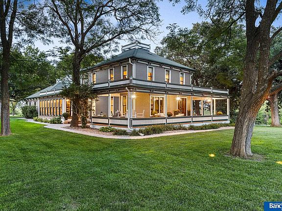 Welcome to an estate that’s more than a home—it’s a romance of history, elegance, and modern living. A rare find for modern people who appreciate timeless architecture. This extraordinary 7.5 acre estate offers 7 spacious bedrooms, 5 beautifully appointed bathrooms, and thoughtful detail. The wraparound veranda invites you to slow down and enjoy nature's splendor. Inside, the romance continues. Breathtaking craftsmanship shines throughout the home’s staircases, ceiling detail, lighting and four elegant fireplaces. Light pours into the stunning sunroom, a perfect retreat overlooking the one-acre pond. Every corner has been thoughtfully designed to balance old-world character with today’s modern conveniences. A full kitchen/bar in the lower level offers endless options-entertaining in style or a private suite for family & guests. The Sand Creek barn has endless possibilities—weddings, events, horses, RVs, or shop space. This estate is unmatched luxury just minutes from south Lincoln.