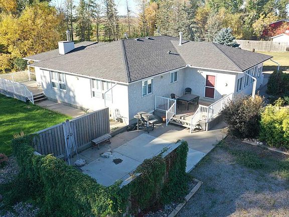 Eighty-eight acres of opportunity stretch out just west of Taber. Shaped like a triangle, this property fans out from its southeast corner homestead toward the west and north, where you’ll find fields serviced by wheel lines and a pivot. With 30 acres of valuable water rights, you’ve got what you need to grow crops, sustain animals, or simply hold onto as a rare investment. At the heart of it all is a classic 2434 sqft bungalow, its stucco exterior accented by protective pecka roll shutters on every window. Inside, the entrance doubles as a laundry space and sun room, from there a convenient 2 pc washroom is tucked to the side before heading into the open expansive kitchen and dining area that can easily host a harvest dinner or a casual weeknight meal. French doors lead into a cozy living room anchored by a wood-burning fireplace. Down the hall, a library with patio doors to a second sun room, this time south facing. Completing the main floor are 2 more bedrooms, a 4pc bathroom and the large primary suite with 3pc en-suite. The basement is a blank canvas for future expansion and has plumbing for a 4th washroom already. The yard is beautifully landscaped and equipped with underground sprinklers to keep everything lush. Outbuildings include a steel-framed 40'x60' shop, sheds, corrals, and shelters for animals. There’s even a 22'x30' heated building with water once used as a photography darkroom—a charming bonus space ready for a studio, hobby workshop, or office. A dugout adds yet another layer of utility and security for the land. Whether your vision is to farm, ranch, or simply enjoy unmatched elbow room, this property delivers.