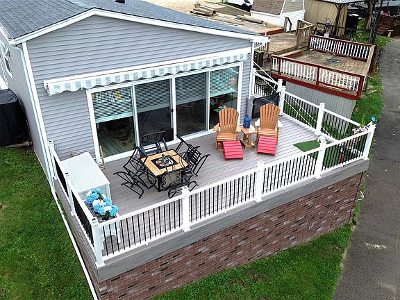 Lakefront property with all of the trimmings! Welcome to Leisure Lake unit #309 where the entire unit has been rebuilt with 2x4 framing and drywall construction from the ground up in March of '24. New at that time are the following roof, windows, kitchen, flooring, paint, electrical, mini split, gray water collection system, retractable awnings over the huge 26x12 composite deck, siding, tankless hot water and 2 all tile full bathrooms with easy access tile showers. Also new is a gravel parking area, shed, and concrete shed pad. Also included in the sale is a pontoon, boat dock, furniture, golf cart, and solar panel system. Leisure lake is a Michigan licensed campground and can not be used as a primary residence, the season runs from May 1 - Oct 31. The lake is a 94 acre lake that is loaded with fish, sandy beaches, and has a 3.5Mile walking ring surrounding the lake. Enjoy all that Leisure Lake has to offer in the most outfitted unit in the community!