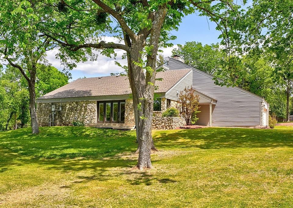 Down a quiet secluded country lane you will find this peaceful and beautiful property. Filled with a mix of trees and open green spaces it is a tranquil oasis. Off Bryant between Britton and Hefner it is close to the city but feels like the country. Property includes gorgeous throughly updated stacked stone home, metal building that is a workshop-48 x 70 (3,360. square feet), pool, hot tub and outbuilding. Shop has two overhead doors. One is 10 foot high and 14 foot wide & other one is 12 feet high and 10 feet wide. Wow-what a kitchen-cherry cabinets, granite counter tops, all stainless steel appliances. Thermador 4 burner gas stove with griddle, wine refrigerator, Thermador microwave and builtin Thermador refrigerator/freezer. It is beautiful. Main living area has high vaulted wood paneled ceiling, two tall builtin cabinets, fireplace and wood floors that continue into large dining area off kitchen. You will love the master bedroom with walk-in closet and fabulous updated bath with huge shower and two sinks and granite counter tops. Home is on one level except 1 living area upstairs with vaulted ceiling and fireplace. Big in ground storm shelter in garage. Enjoy summer days outside on large deck with hot tub and big pool. There is a separate two story outbuilding built by a previous owner. It is not finished and is being sold "As Is". Square footage according to county records: house 2,678, workshop 3,010 but I measured shop at 3,360 & outbuilding 1,080. All information is believed to be correct but is subject to buyer verification.