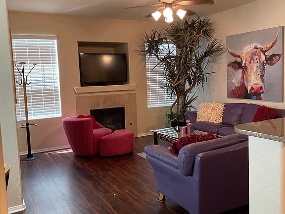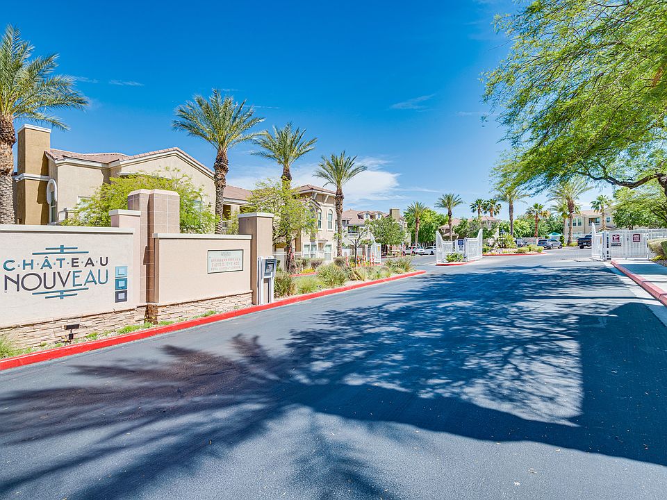 In the much sought-after Community of Chateau Nouveau, in West Las Vegas, a totally refurbished ground-level 2-Bedroom, 2-Full-Bath fully-furnished unit is available for Lease. Amenities include dark wood laminate flooring throughout, granite countertops in both baths and kitchen, new stainless appliances, gas fireplace in Living Room, window coverings, tasteful contemporary furnishings, full-size washer & dryer in laundry area, built-in desk area and direct access tandem 2-car garage with patio off kitchen. Community amenities include Community Pool, Spa, Clubhouse, Exercise Room, Gated Security Entrance and beautiful Landscaping throughout the Community. Chateau Nouveau is located adjacent to Shopping, Restaurants and the newer Las Vegas Athletic Club. Unit will be available to preview 11/23 to 11/29/25. All utilities including Gas, Electric, Cable TV and Internet included. Available for Lease 12/01/2025. Total Move-In Cost is $4,050.00 including Refundable Security Deposit $1,500 and Non-Refundable Cleaning Fee $300 and First Month's Rent $2,250.
