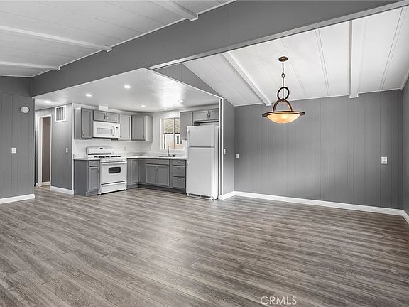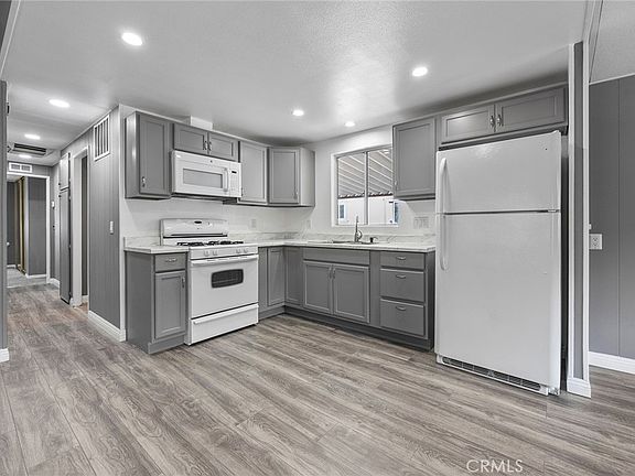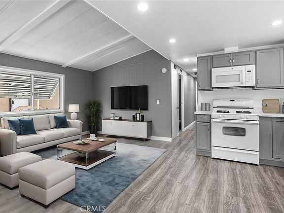 Welcome to the highly desired Thunderbird Villa Community! Stunning home with completely remodeled interior. Double wide design with high ceilings and great layout. Fresh interior paint, new vinyl flooring, base moldings, plumbing, light fixtures, recessed LED lighting and much, much more. The remodeled kitchen features new gas range, microwave, sink and disposal and has great counter and cabinet space. Existing refrigerator included. 2 spacious bedrooms with mirrored wardrobe and 2 beautifully remodeled bathrooms. The enclosed front porch is a great bonus/flex space. Interior laundry/utility room complete with washer and dryer. 2 covered parking spaces and tons of extra street side parking. Perfect for guests and gatherings. Thunderbird Villa is a 55+ community and offers sparkling pool & spa, recreation areas, game & laundry room, and 2 Rec Halls for events. All Buyers must be approved with park management prior to opening escrow.