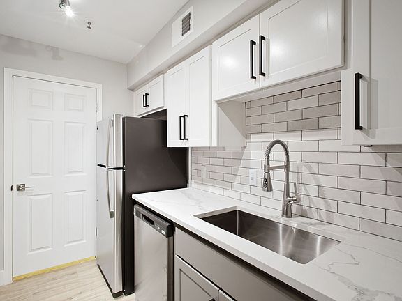 - Exterior features: 6 Panel Doors, 6 inch baseboards, Black Appliances, Brushed Nickel Fixtures, Ceramic tile backsplash, Courtyard, Custom Closets, Granite Countertops, Package Receiving, Pet Park, Premium Cabinets, Spruce Lifestyle Services, Stainless steel appliances, Stand up Shower, TV Lounge, Two-Toned Cabinets, White Cabinets, White Quartz/Undermount Sink, Wood Style Flooring Throughout, Wood thru out except bedrooms