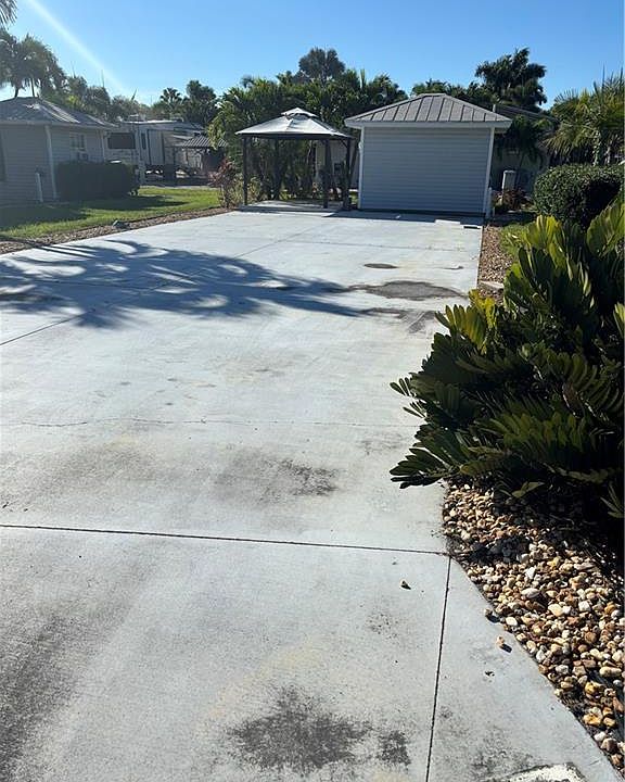 This oversized corner lot provides a comfortable atmosphere and offers space for entertaining under the newer soft top gazebo.  The accessory building is unfinished but has the electric and plumbing permitting done.  It also comes with a washer/dryer, refrigerator, and shelving.  Come add your finishing touches to this property. Cypress Woods RV Resort is an ownership Luxury Resort. Amenities include two pools, hot tubs, shuffleboard, tennis, and pickleball courts.  The Town Center has a community room, card room and Great Room with a stage. There also is a large catering kitchen for the numerous events held throughout the year.  The Welcome Center has a additional car/community room and library as well as a day span and 24 hour gym!  Cypress is a friendly gated community providing plenty of additional activities, such as yoga, water aerobics and much more.  Conveniently located close to everything South West Florida has to offer.