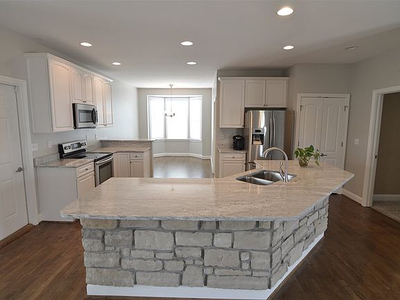 Simply Stunning! Wonderful Large Brick/Stone Ranch*3 Car Side Entry Garage*Gorgeous White Kitchen w. Designer White Granite & Huge Island!*Rich Deep Toned Hardwood Floors*Split Master Design*Luxury Owner's Suite*Huge Walk-In Closets*Formal Dining w.Columns*1st Flr Laundry*Finished Walkout Lower Level w/2nd Kitchen/Full Bath/Gathering Rm & Rec Rm(Used as Bedroom 4)-Great for Shared Living w. Separate Entrance! Huge Partially Covered New Deck for Relaxing*Covered Patio*Desirable Cul-de-Sac Lot*New Carpet &Paint on First Floor*A True Gem*Home Warranty Included! Easy One Level Living! Just Move In