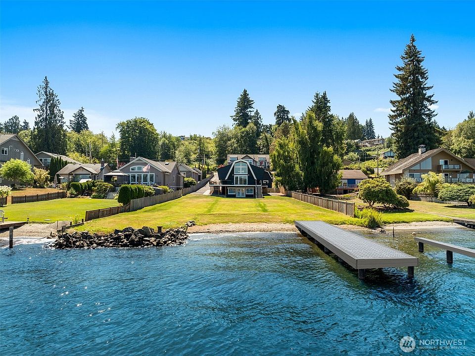 [NEW DOCK] Just under half an acre with 75 feet of pristine waterfront, a sandy beach, and sweeping views of Lake Stevens and the North Cascade Mountains. Completely remodeled from the studs out, this 4-bedroom, 3-bath home blends modern luxury with thoughtful design. Inside, has two full kitchens, spacious living areas, and plenty of storage, perfect for multi-generational living or hosting guests in style. Has AC for year-round comfort. The level lot offers irrigation, detached garage, RV parking, Tesla charging station, and a ramp for easy, no-stairs entry. Whether you’re enjoying a morning coffee by the water, hosting summer barbecues, or watching sunsets over the mountains, this property delivers the ultimate lakefront lifestyle.
