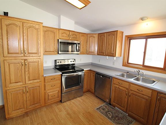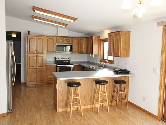 Town of Spencer , 1.12 Acres mol. 2002 Ranch house, 2 stall attached garage, plus 2 Stall detached garage/shop. Open concept living room, dining room, & kitchen, vaulted ceilings, patio doors off dining room to deck and overlooking private backyard. Main floor laundry. Master suite complete with walk in closet, full bathroom with 2 sinks, separate shower and jetted tub, plus attached private office. Property located across the street from Spencer School Forest.