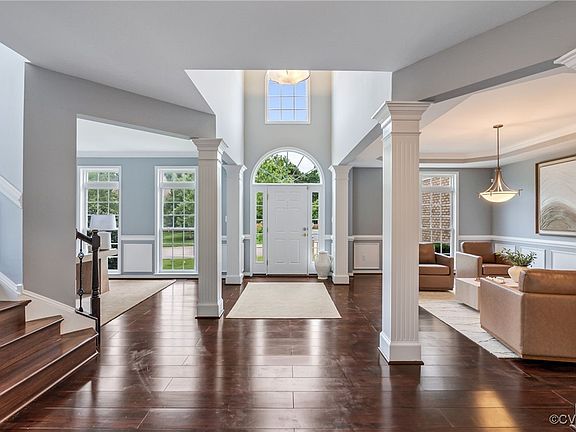 Step into refined elegance with this stately brick-front home located in the highly desirable Collington community of Chesterfield County. A welcoming exterior with manicured landscaping sets the stage for the timeless charm and sophistication found throughout. Inside, the grand two-story foyer opens into spacious, light-filled living areas where rich hardwood floors, crisp molding, and elegant architectural details create a seamless flow from room to room.