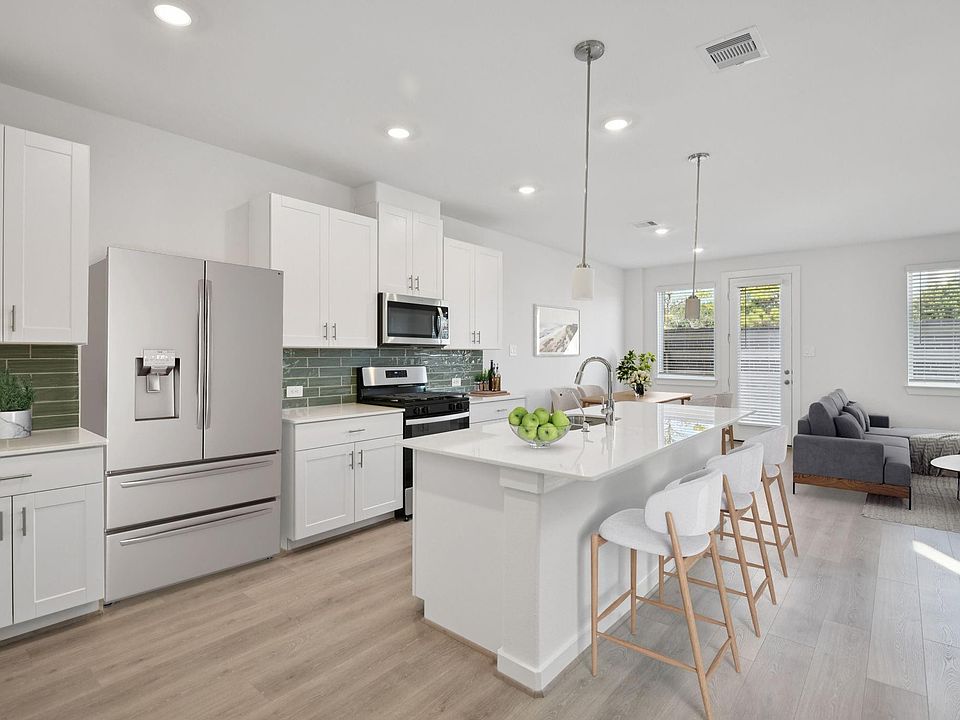 Brand new, energy-efficient home available NOW! An open concept allows you to prepare dinner at the Harlow's kitchen island without missing conversation in the great room. White cabinets with white quartz countertops and aloe backsplash, brown tone EVP flooring with multi-tone carpet. This master-planned community is a rare find in Spring Branch. The Townhome Series features a simple buying process with clear pricing and no surprises. With ready move-in homes made up of five two-story floorplans ranging from 1,495 – 2,052 sq. ft., you’re sure to find something you’ll love. Each of our homes is built with innovative, energy-efficient features designed to help you enjoy more savings, better health, real comfort and peace of mind.