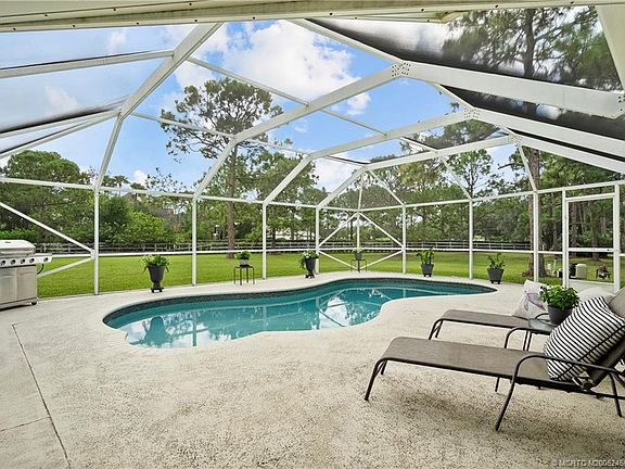 Discover rare сοuntrу style lіving іnside the Stuart Weѕt equеstrian community. This well built concrete block pool home offers 4 bedrooms and 3 full baths on a peaceful 2.12 acre parcel. Light filled living areas flow through the open floor plan to an updated kitchen and open family room with direct views to the private screened pool and expansive backyard - perfect for entertaining or a quiet Florida evening. The property features a two car garage, mature landscaping, and a long private driveway. Acreage provides room for paddocks, arenas, or simply enjoyment of wide open green space while just minutes from shopping, A rated Martin County schools, and access to waterways. HVAC 2023, Roof 2018. Kitchen was updated just 3 years ago. Pool pump is new and pool was recently resurfaced. Septic passed inspection and got a clean out in 2024. Property is served by two HVAC systems and two water heaters. This home is squeeky clean and truly move in ready!