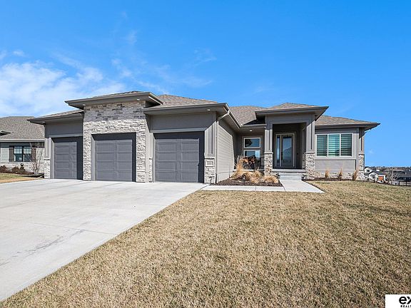 Step into luxury living with this stunning walkout lot nestled in Aspen Creek North! 5 beds,3 baths, & a heated 3-car garage, this home offers an exceptional blend of style & functionality. The kitchen is a chef's dream with upgraded features including a wood hood, open shelving, an oversized island w/ a farmhouse sink, & sleek quartz countertops. Maple wood floors grace the main living area. The great room is a focal point with its vaulted ceiling, elegant fireplace, & custom cabinets with shiplap detailing. Retreat to the master suite with a walk-in shower & a closet conveniently connected to the laundry room. Entertain guests in the finished lower level complete w/ a wet bar & spacious rec room. This home comes fully equipped with 5 TVs, all appliances, a whole house generator, allure blinds, SimpliSafe security, and more. Enjoy the covered composite deck, overlooking the fully fenced yard with a puppy grate. Don't miss this chance at luxury living!