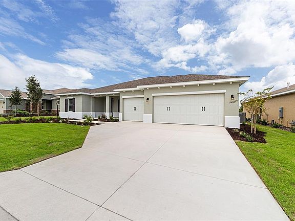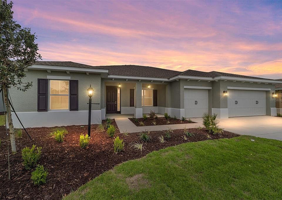 Beautiful New Construction Beatrix Model in LongLeaf Ridge at On Top of the World! This thoughtfully designed 2-bedroom, 2-bath home features a versatile flex room with French doors and a closet, ideal for a home office or guest space. The open floor plan offers seamless flow between the main living areas, highlighted by a spacious living room with a 4-panel sliding door that opens to the screened lanai—perfect for indoor-outdoor living. The kitchen showcases stunning gray staggered cabinets with crown molding, quartz countertops, a large island, under-cabinet lighting, elegant tile backsplash, stainless steel appliances, and a generous walk-in pantry. The adjacent dining area also offers access to the lanai through a sliding glass door, filling the space with natural light. The primary suite features a 3-panel window overlooking the backyard, a large walk-in closet, and a beautifully tiled ensuite with dual vanities, a linen closet, and a zero-entry walk-in shower with a built-in bench. The guest bedroom includes a closet and is conveniently located near the guest bath with a tiled tub/shower combo. Additional highlights include a 2-car garage with a dedicated golf cart garage, split bedroom design, and modern finishes throughout. Located in the desirable LongLeaf Ridge neighborhood within On Top of the World, residents enjoy an unmatched 55+ lifestyle featuring golf courses, fitness centers, swimming pools, restaurants, pickleball, recreation centers, and endless clubs and activities.