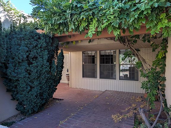 Located in a highly desirable northeast heights neighborhood, this lovely 3 bedroom, 1-story townhome has a large great room with vaulted beamed ceiling and wood burning fireplace. Kitchen has granite counter tops and comes complete with microwave, smooth top stove and refrigerator. The huge primary suite has a sitting area and two walk-in closets, one with builtin dressing table and skylight. Two additional spacious bedrooms. The private backyard has a covered and open patio, manicured lawn and mature bushes and shrubs.