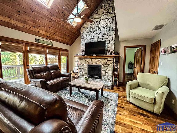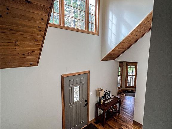 Be sure to watch the walkthrough video of this breathtaking waterfront property! Gorgeous 4/potential 5 bedroom Cedar Cape Cod with walkout basement situated on 4.35 acres with 5 acres common area, 40x18 pole barn & a 2 car attached garage, heated & cooled dock house, paddle boat & hot tub included, a grand living room with soaring 2 story ceilings & floor to ceiling stone fireplace, new hardwood flooring throughout main level in 2020, updated kitchen with granite countertops & stainless steel appliances, main level master suite with large bath, walk-in closet & sliding doors with access to upper level deck, gorgeous lake views from several rooms, a finished walkout basement with huge family room, new upstairs heating & cooling in 2021, a new metal roof in 2019 & more!