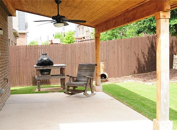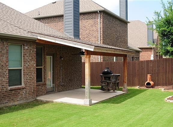This is a very nice house built in 2012 in the Frisco School district and in a great neighborhood. It has an open floor plan. Great for entertaining. Granite counter tops in kitchen. Large master bedroom with a sitting area. Split bedroom design. Newly added enlarged patio and permanent roof with fan. Perfect spot to drink your morning coffee. This is walking distance to Community club house and pool. This is a must see. Will not last long.