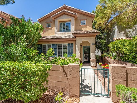 Peccole Ranch! This charming two-story gem, perfectly nestled in a prime location! Close to shopping, dining, schools, and with easy highway access. Be greeted by a fully-fenced front yard with matured greenery, perfect for welcoming guests. Discover a lovely foyer that leads to a generous living room adorned with tall ceilings, a trending color palette, plantation shutters, and stunning wood-plank tile flooring, creating an ambiance of elegance and comfort. The eat-in kitchen features built-in appliances, recessed lighting, granite counters, white cabinetry. Venture upstairs to find a well-sized primary bedroom showcasing Berber carpeting, a full ensuite, and a sliding door walk-in closet and other two great size bedroom one with walking closet. Additional highlights include a spacious 2-car rear garage with attached cabinets for extra storage!House was remodeled 2 years ago! Across from Faith Lutheran School,Near to DTS,Red Rock,Aviators Stadium,VGK. Hurry, this beauty will go fast!