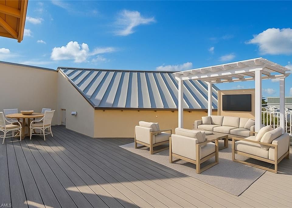 Perfectly positioned on the waterfront, this stunning residence combines incredible water views, a coveted rooftop terrace, and the unmatched convenience of downtown living. This 4-level, 3-bedroom, 3 and a half bathroom condo is located in charming Olde Naples Seaport. The crown jewel of this home is the spectacular rooftop terrace with a built-in grill. Recently upgraded with new composite decking, this space offers panoramic views of Naples Bay. It serves as the ultimate vantage point to enjoy breathtaking sunsets, bask in the warm Florida sun, or host your friends for dinner. Inside you’ll find a sleek wet bar perfect for entertaining, a private elevator and an oversized attached 2-car garage. Boating enthusiasts will love that you can live just upstairs from your boat. Slips at Olde Naples Seaport are available for lease or purchase, putting no-bridge Gulf access right at your fingertips. And when you’re not on the water, you’re just down the street from world-renowned shopping, dining, and vibrant downtown Naples. Not to mention you’re less than a mile from pristine sugar sand beaches. Whether you’re hosting friends & family, relaxing under the Florida sun, or taking in an iconic Naples Sunset, this waterfront retreat offers the perfect blend of convenience and lifestyle. Don’t miss this rare opportunity to own a piece of paradise! Some images are virtually staged or conceptual renderings, they are intended for inspiration and do not reflect the current condition of the property.
