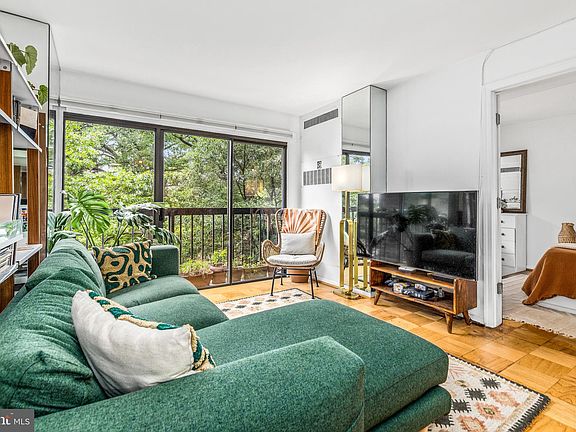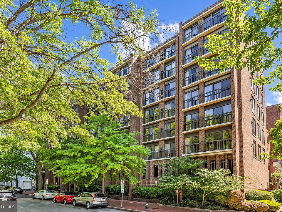 Unbeatable location with garage parking! This bright, stylishly updated 2-bedroom condo sits on the third floor with a sought-after western exposure. Sunlight pours into the living room and primary bedroom, each with Juliette balconies framing serene views of trees and parkland. The kitchen offers ample prep and storage space and boasts granite countertops, stainless steel appliances, a wine fridge, and a breakfast bar. Gleaming hardwood floors flow throughout. Just two blocks from Georgetown and three blocks from Foggy Bottom–GWU Metro, the home offers the perfect balance of urban convenience and peaceful surroundings. Trader Joe’s, Whole Foods, restaurants, and shops are all at your doorstep. This pet-friendly community features a rooftop deck with sweeping views and additional storage. A rare find that combines comfort, style, and an enviable location.