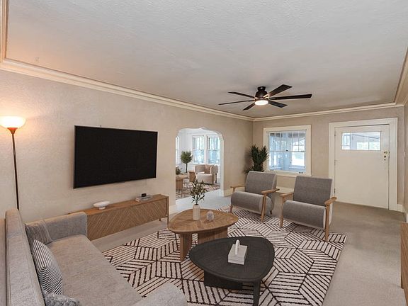 Just steps from the Shops at Roosevelt, this charming 1919 Craftsman bungalow blends timeless character with thoughtful updates. A stunning facade and inviting screened-in front porch, arched windows, and door sets the tone, while inside you’ll find a sun-filled living room that flows seamlessly into a bright sunroom. The updated kitchen features newer stainless steel appliances and a spacious eat-in area—perfect for entertaining. Two generous bedrooms and a large bath with dual sinks and a tiled shower complete the main floor. Upstairs, the primary suite offers an expansive layout and an impressive walk-in closet. Enjoy the rare convenience of a 3 car tuck under garage, large third-acre lot, and a neighborhood brimming with charm. Recent improvements include fresh interior paint, masonry updates, a newer roof, and a bathroom refresh, making this home truly move-in ready.