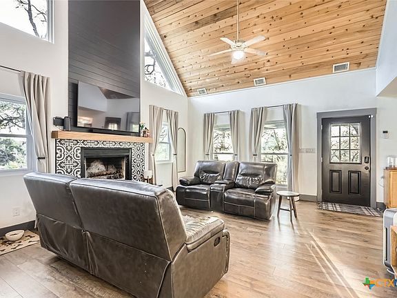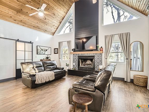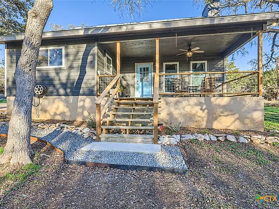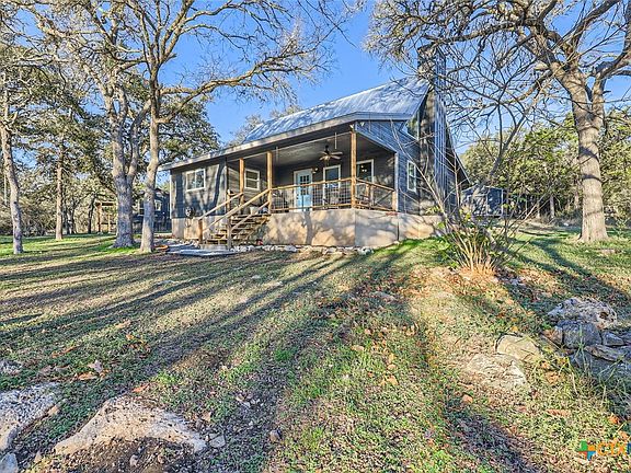 Welcome to your private hill country retreat, a charming 2-bedroom, 2-bathroom home nestled on 7.66 picturesque acres. This peaceful property offers endless possibilities with a separate 1-bedroom, 1-bathroom accessory dwelling unit (ADU) and a spacious workshop, making it ideal for multigenerational living, rental income, or creative pursuits. Plus, take advantage of an assumable VA loan with an incredibly low 2.25% interest rate, offering significant savings for qualified buyers. Step inside the main house and be greeted by the warmth of rustic elegance. The living room boasts a soaring wood-clad ceiling and a cozy wood-burning fireplace, creating a welcoming ambiance perfect for gatherings or quiet evenings by the fire. The open-concept kitchen is a chef's delight, featuring a butcher block island, granite countertops, quality appliances, and ample storage for all your culinary needs. The main-floor primary suite is a serene retreat with a walk-in closet and a private en-suite bathroom, offering comfort and convenience. Upstairs, you’ll find a charming guest bedroom and a well-appointed guest bathroom, providing space and privacy for family or visitors. A large laundry room on the main floor adds practicality to everyday living. The home is thoughtfully designed with energy efficiency in mind, featuring a durable metal roof for added peace of mind. Enjoy outdoor living at its finest with a covered front porch and patio, perfect for savoring your morning coffee or watching the sunset over the rolling landscape. The separate ADU provides flexibility for guests, a home office, or rental opportunities, while the workshop offers ample space for hobbies, storage, or business ventures. The property also includes a well house, adding to its self-sufficiency and rural charm. Schedule a showing today!