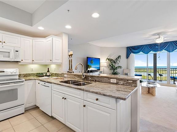 Experience coastal luxury in the sky! This 2-bedroom, 2-bathroom residence offers breathtaking views of the Gulf and Bay with world-famous sunsets. Residence features include granite countertops, a new water purification system, a spacious laundry room, ample closet space, and electric storm shutters for peace of mind. Residents enjoy access to resort-style amenities, including fitness facilities, on-site fine dining, and complimentary transportation to shopping and medical appointments, ensuring a truly effortless lifestyle. With fee-simple, deeded ownership and no financial or medical commitments, this 55+ active community provides both independence and peace of mind. All within minutes of Naples’ beaches, shopping, and dining. One car garage spot is included.