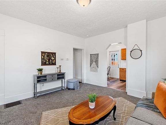 Sunshine filled colonial home on a corner lot has large rooms with versatility. From the front porch enter into spacious living room and access another large front room (parlor) or head to the kitchen with eat-in area. Off the kitchen is a deck and your own off street driveway and parking. There is a bedroom on the main floor. Upstairs are 3 more bedrooms and an updated bathroom. Home has a 3rd floor walk-up attic. This home has replacement windows, new carpet throughout, and fresh paint. Basement is clean and has tall ceilings. Home is fresh and ready for new owners to enjoy. Schedule your showing today!