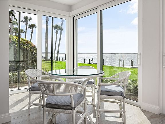 Club membership potential to Moorings Yacht & Country Club. Idyllic 1st floor condo with breathtaking water views! Direct riverfront location is perfect for viewing sunsets, dolphins, wildlife & boat activity. Recent updates include tile wood-look flooring throughout, impact glass windows & sliders w/remote controlled blinds, new kitchen & appliances, new bathrooms & 2020 A/C. West Passage community offers 1-car garage with storage, small dock, heated pool & access to the Moorings private beach. One pet allowed w/board approval (NO pet weight limit!) Sizes/dimensions approx. Buyer to verify.