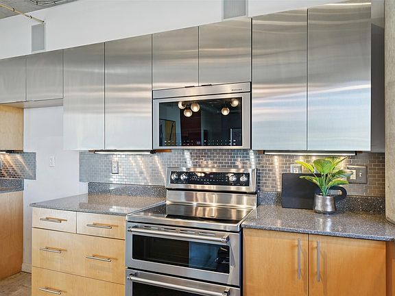 With 10-foot ceilings, an open floor plan and an oversized island with seating for six, this loft is ideal for entertaining — imagine hosting your own New Year’s Eve fireworks watch party from home.