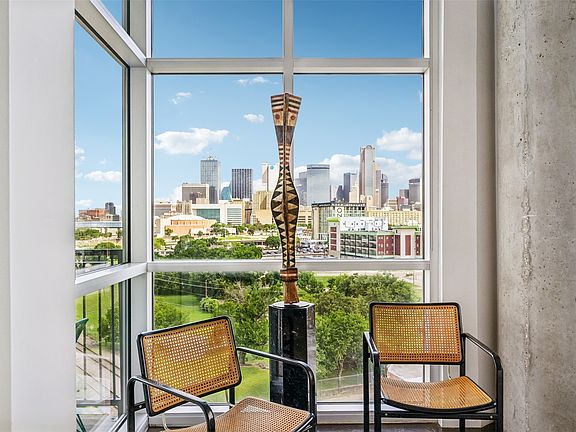 Enjoy sunrises, sunsets and amazing skyline views from your new perch in this rare to find, designer owned, corner unit condo at the Beat Lofts. With 270-degree views, it is easy to see why this unit has only had one owner. From Fair Park fireworks and sunrise shows to the fire in the sky sunsets, the city’s skyline and Mother Nature provide a vibrant backdrop for you while sipping your morning coffee or entertaining guests. Updates include: a 5-burner gas range with convection oven; a Bosch dishwasher; a pantry with appliance garage & pull-out drawers; Elfa closet systems in both bedrooms and office nook; custom lighting in dining area which pays homage to the Reunion Tower ball; solar shades in living areas + blackout shades in primary suite. HVAC replaced in 2021. The primary bath has dual medicine cabinets, a wallpapered wall, a quartz countertop in the nook with a cabinet above. Shower was updated in 2025. The primary closet has a built-in safe. With an open and entertainer-style floorplan, this 2 bed, 2 bath, 2 assigned parking spots loft is ready for you to showcase the skyline with friends and family especially on New Year’s Eve or the 4th of July. Community amenities include: resort-style pool w heated spa, 2 community grills, a fire pit and covered seating area on the 2nd level deck. Private dog run on the first level, but your furry friends will love the adjacent neighborhood dog park w one-third of an acre to run and play. Take advantage of the location’s close proximity to everything that downtown Dallas, Farmers Market, Victory Park, Trinity Groves, Deep Ellum and beyond has to offer. The loft is 1 block from the Cedars DART station. Close proximity to ZaLat Pizza, Gilley’s, Alamo Drafthouse, Four Corners Brewery, Val’s Cheesecakes, Sanders Fit, Full City Rooster, Lee Harvey’s, & more! Easy access to multiple highways and freeways not to mention the added benefit of secured building entry with double gated covered parking garage with elevator access.