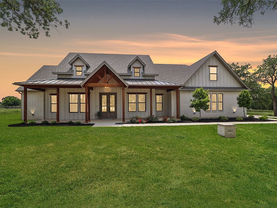 OWNER FINANCING AVAILABLE. Modern farmhouse charm meets high-performance construction in this newly built home on 3 wooded acres in sought-after Bluebonnet Ridge, just off Tin Top Road in Weatherford. Designed with care and crafted to last, this home offers thoughtful upgrades that go beyond the surface—including high-impact hurricane ties for extra durability in Texas weather, a fully spray foam insulated attic for energy efficiency, and solid core doors throughout for superior sound insulation.