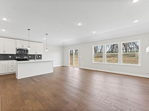 Pack your things and get moving because this one is ready to go! Welcome to this stunning 3 bedroom, 3 bathroom home with a spacious 3-car garage on a home site backing to greenspace and privacy! The open-concept living area is flooded with natural light from large picture windows framing a beautiful yard and treed view. Featuring a modern kitchen (with large walk-in pantry) perfect for both everyday living and entertaining, this home also enjoys a private primary retreat, complete with an en-suite bathroom and ample closet space that is also connected to the laundry room. The secondary bedroom on the main level would make a perfect home office or a guest suite while the third private bedroom in the finished lower level sits next to another full bath and a large rec room just waiting for your use and decor ideas to come to life. But it doesn't end there. You still have 700 square feet of unfinished space for storage or future expansion potential! Eastbrooke at Creekmoor has it all! Designed around 108 acre Lake Creekmoor and the acclaimed 18 Hole Championship Golf Course, Creekmoor offers one of the most comprehensive residential amenities packages available, where homeowners with both active and relaxed lifestyles enjoy what feels like vacation all year long. Pools, tennis, pickleball, basketball, 24-hour fitness center, golf pro shop, Tavern on the Moor restaurant and bar, fishing, boating, SUP, and still more...it's ALL here! With an abundance of shops, restaurants and services minutes away and with easy access to Jackson and Johnson Counties, homeowners have all the benefits of metro living at their fingertips while enjoying home life outside the hustle and bustle. Whether making your first home purchase or your last, this is a destination community like no other.